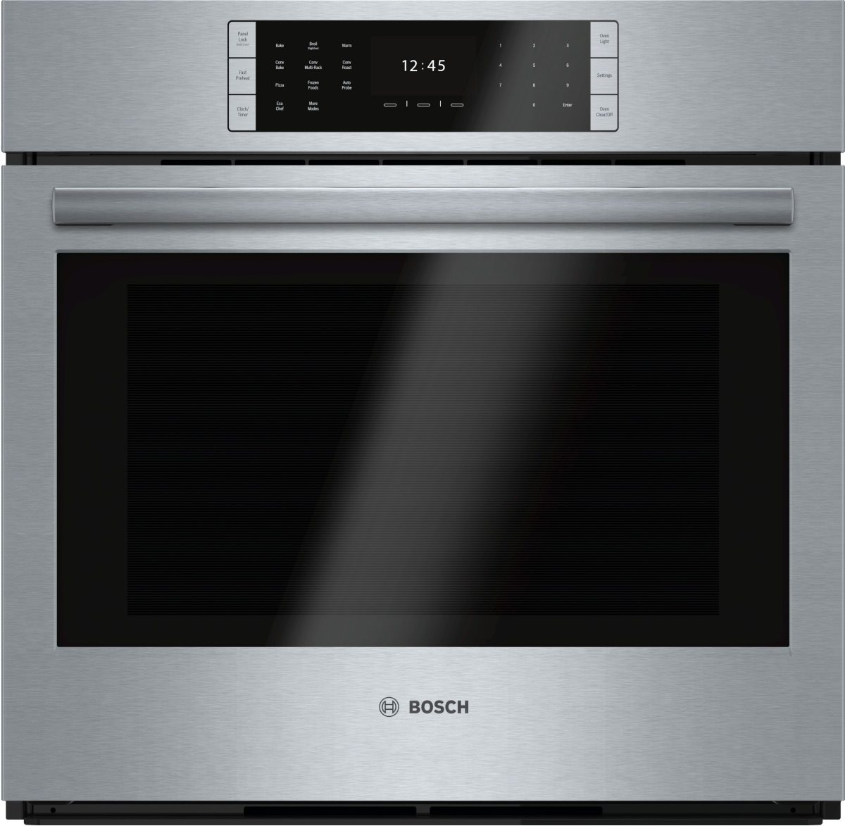 The Bosch Wall Oven Features a QuietClose® Door That Won't Slam Shut and a High-Resolution TFT User Interface. Convection Pro has a third heating element and a fan evenly circulates air around the cavity so you get consistently even golden results.Read More