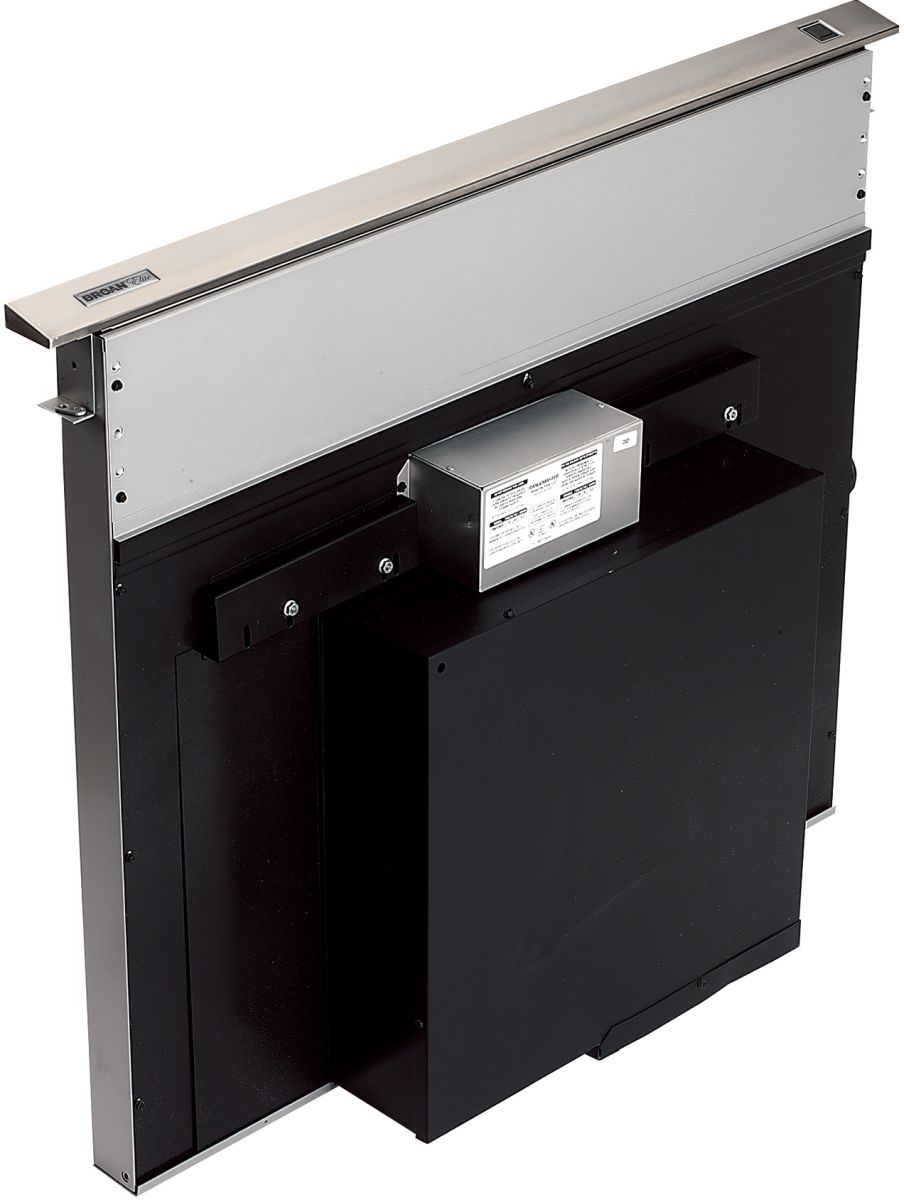 Compact design is installed directly behind the cooktop for an unobtrusive appearance. Thin profile saves precious space under the cabinet