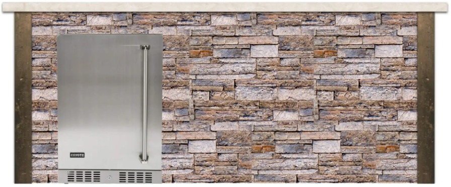 Keep drinks and food chilled with the Coyote 24″ outdoor refrigerator to make the 8′ bar island an essential addition to your outdoor space