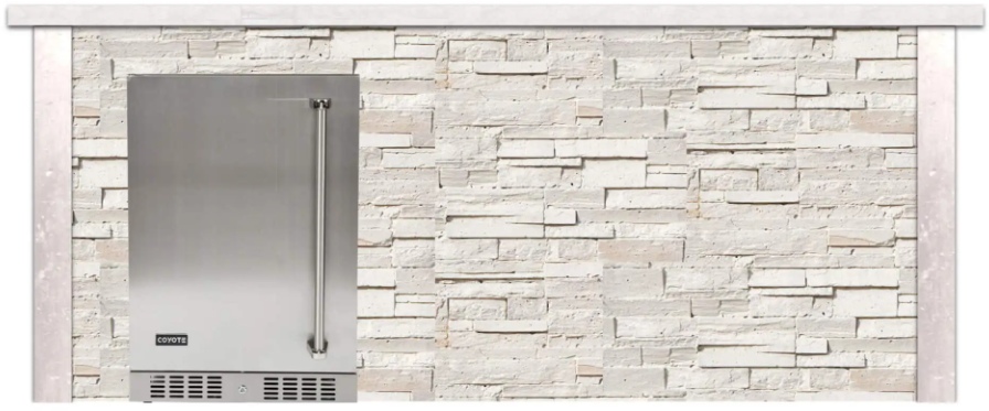 Keep drinks and food chilled with the Coyote 24″ outdoor refrigerator to make the 8′ bar island an essential addition to your outdoor space