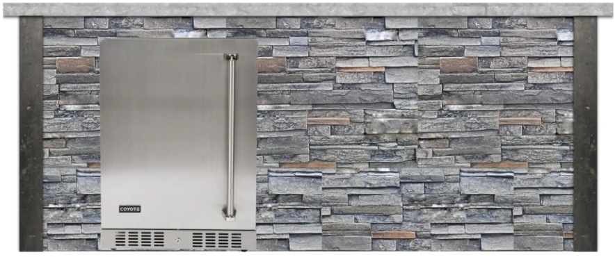 Keep drinks and food chilled with the Coyote 24″ outdoor refrigerator to make the 8′ bar island an essential addition to your outdoor space