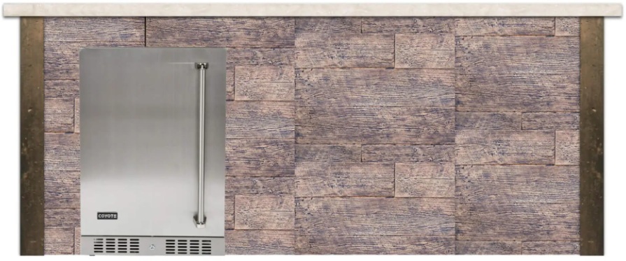 Keep drinks and food chilled with the Coyote 24″ outdoor refrigerator to make the 8′ bar island an essential addition to your outdoor space