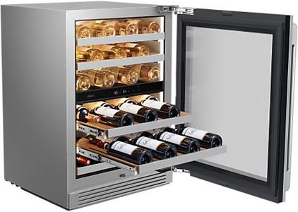 Ensure your wine is perfectly preserved and beautifully showcased with the Dacor Undercounter Wine Cellar. Enjoy a seamless kitchen design with custom design-ready panels, a versatile field-reversible flush-capable hinge and flexible installation. Store up to 41 bottles and beautifully showcase your collection with 3D Lighting and a stunning SteelCool™ interior. Optimally preserve your selection with dual temperature zones and customizable settings within an intuitive touch control panel. An innovative GlideRack™ system eliminates vibration to safeguard taste, adding the perfect finishing touch. *CUSTOM PANEL & HANDLE SOLD SEPARATELY*Read More
