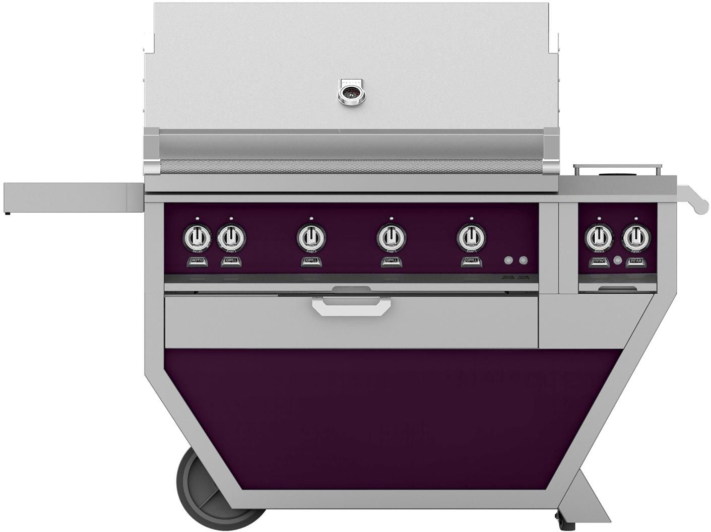 Hestan deluxe grills deliver high-performance power with superior-grade construction, easy maneuverability and plenty of workspace for food prep. The heavy-duty Horizon Hood™ opens easily and holds place at the desired height for easy access, while the Halogen Stadium Lights™ illuminate your entire cooking area. The built-in whisper-quiet rotisserie adds even more culinary versatility.