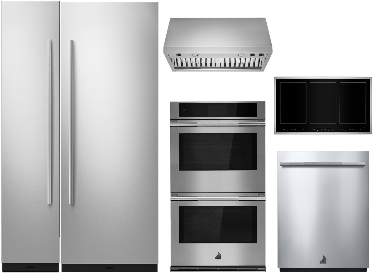 JennAir 6 Piece Kitchen Package with a column refrigerator, column freezer, double electric wall oven, induction cooktop, wall mounted range hood and built in dishwasher.Read More