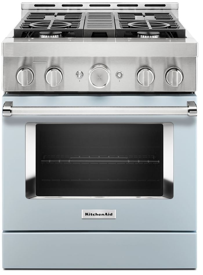 Empower your creativity with a 30-inch KitchenAid® Commercial Style Range with 4 burners. This gas range features two versatile 20,000 BTU Ultra Power™ Dual-Flame Burners with the power and precision needed to successfully sear, simmer, stir-fry and saute´. Even-Heat™ True Convection helps you achieve more consistent baking and roasting.Read More