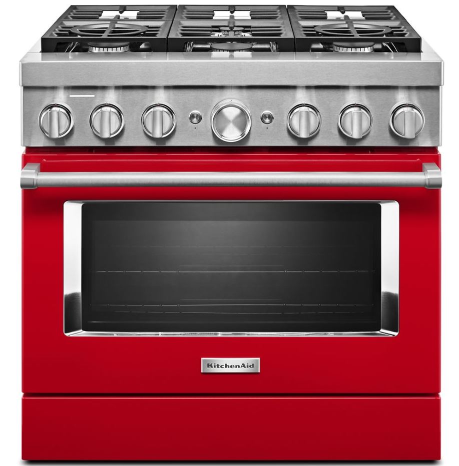 Empower your creativity with a 36-inch KitchenAid® Pro Style Range with 6 burners. This dual fuel range combines a gas cooktop with the even baking of an electric oven. Two versatile 20,000 BTU Ultra Power™ Dual-Flame Burners offer the power and precision to sear, simmer, stir-fry and saute´. Even-Heat™ True Convection helps you achieve more consistent baking and roasting.Read More