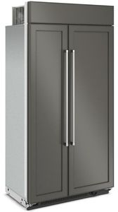 Allows you to install custom front panels and handles over the Side-by-Side Built-In Refrigerator doors to create a seamless look with kitchen cabinetry. Panels and handles not included.