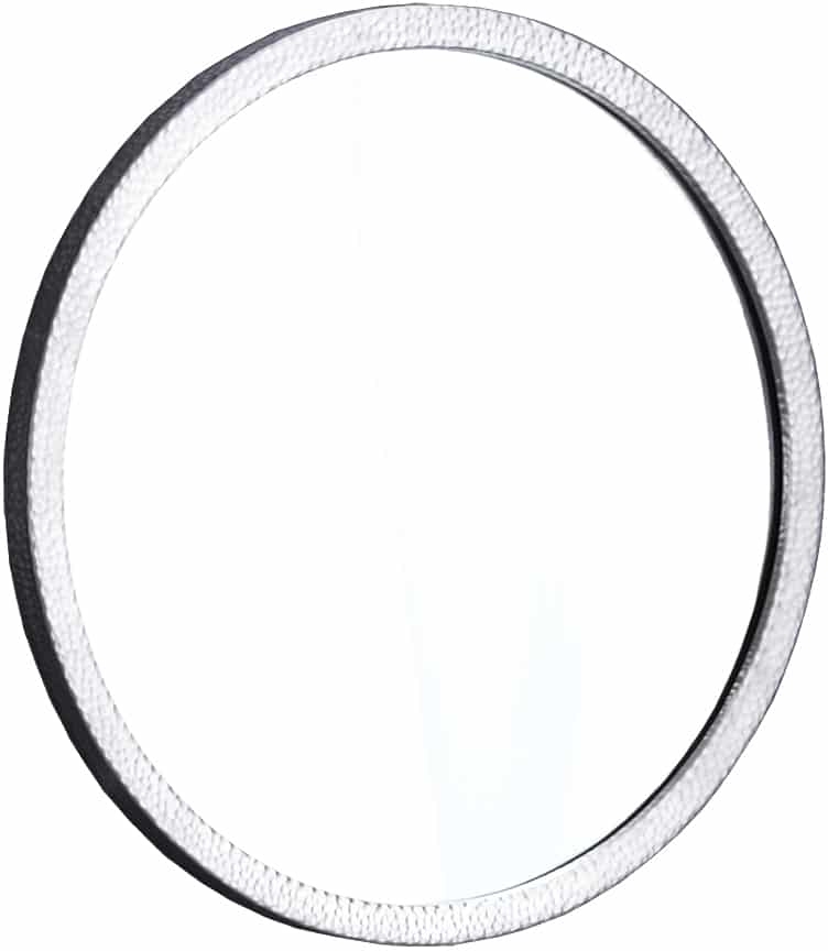 Divinity Round hammered mirror with inset beveled glass is one well-rounded mirror, offering just the right touch of glimmer and textural interest. Simply divine as a bathroom mirror paired with the Brushed Nickel finish bathroom sinks or as a decorative mirror in your eco-chic setting.