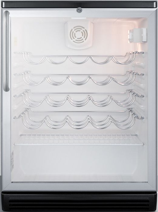The SWC6GBLBITB is conveniently sized at just 24" wide, with a front-breathing design for built-in installation under counters. The fully finished black cabinet also allows freestanding use. This unit features a double pane tempered glass door for reliable storage. We include our signature towel bar style handle in brushed stainless steel to complete the professional look. The lock is located towards the top of the door for easier access.Read More