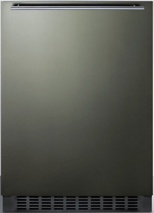 SUMMIT's FF64B Series brings quality and convenience under the counter with a fully featured lineup of built-in all-refrigerators. Sized with a convenient 24" footprint, the FF64BXKSHH refrigerator utilizes a front-breathing design for built-in installation under counters, with a fully finished black cabinet that also allows freestanding use. This model's reversible door comes in our new black stainless steel finish from our exclusive basalt collection. The wrapped door is made from 304 grade stainless steel with a high gloss finish in a neutral hue to perfectly accent or complement your kitchen design. The door is strongly resistant to most fingerprints and can easily be wiped clean with a dry cloth. Our signature thin handle in brushed stainless steel is mounted horizontally to complete the modern look. Inside, the FF64BXKSHH utilizes frost-free operation with fan-forced cooling to ensure low maintenance and even temperature distribution. Recessed LED lighting offers an attractive yet efficient look. The digital thermostat makes it easy to manage the interior temperature. This unit includes adjustable glass shelves for flexible and spill-proof storage. The floor is specially slotted to hold bottles in place. Additional features include an open door alarm, high temperature alarm, and Sabbath mode setting that lets you disable some of the electrical elements during periods of observance. The FF64BXKSHH refrigerator is ETL-S listed to NSF-7 commercial standards and is ENERGY STAR certified as a commercial refrigerator. It also meets DOE standards for residential applications, using 20% less energy than the maximum allowed for this product class and capacity. With its deluxe style and user-friendly features, this unit is the perfect choice for home or commercial kitchens. For a matching frost-free all-freezer, see the SCFF53BXKSHH.