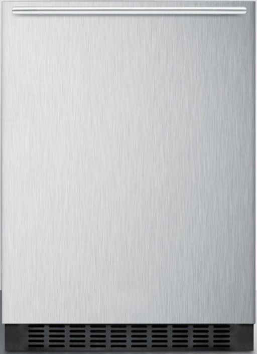SUMMIT's FF64B Series brings quality and convenience under the counter with a fully featured lineup of built-in all-refrigerators. Sized with a convenient 24" footprint, the FF64BXCSSHH refrigerator can be used built-in or freestanding. It has a stainless steel wrapped cabinet and reversible door. A thin stainless steel handle is mounted horizontally for a sleek, modern look. Inside, the FF64BXCSSHH utilizes frost-free operation with fan-forced cooling to ensure low maintenance and even temperature distribution. Recessed LED lighting offers an attractive yet efficient look. The digital thermostat makes it easy to manage the interior temperature. This unit includes adjustable glass shelves for flexible and spill-proof storage. The floor is specially slotted to hold bottles in place. Additional features include an open door alarm, high temperature alarm, and Sabbath mode setting that lets you disable some of the electrical elements during periods of observance. The FF64BXCSSHH refrigerator is ETL-S listed to NSF-7 commercial standards and is ENERGY STAR certified as a commercial refrigerator. It also meets DOE standards for residential applications, using 20% less energy than the maximum allowed for this product class and capacity. With its deluxe style and user-friendly features, this unit is the perfect choice for home or commercial kitchens. For a matching frost-free all-freezer, see the SCFF53BXCSSHH.