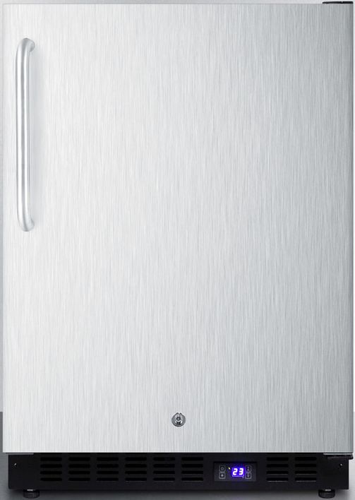 SUMMIT SPFF51OS Series features versatile frost-free all-freezers perfectly sized and featured for convenient use in or outdoor spaces. The SPFF51OSCSSTB is a 24" wide all-freezer designed for built-in or freestanding use. The cabinet and door are fully wrapped in 304 grade stainless steel to hold up to the outdoor elements. The door includes a factory installed lock for added security and a towel bar handle for a professional look. Inside, the SPFF51OSCSSTB is designed for true convenience and low maintenance operation. The frost-free design ensures users won't have to manually defrost the 4.72 cu.ft. interior, while adjustable shelves offer flexible storage solutions. Recessed LED lighting provides an attractive, energy efficient display. A digital thermostat (located in the unit's kickplate) makes temperature management easy and intuitive. With solid construction and a striking design, the SPFF51OSCSSTB makes an ideal finish for any outdoor kitchen. For a matching refrigerator, see the SPR627OSCSSTB.