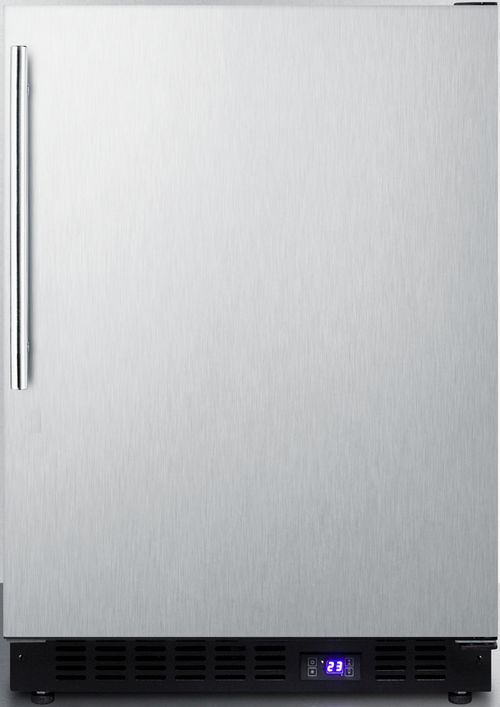 SUMMIT's SCFF53B Series brings quality and convenience under the counter with a fully featured lineup of built-in frost-free all-freezers. Sized with a convenient 24" footprint, the SCFF53BXCSSHV freezer can be used built-in or freestanding. It has a stainless steel wrapped cabinet and sealed back for easy cleaning. The stainless steel wrapped door includes a thin handle designed to match many popular styles of cabinetry. Inside, the SCFF53BXCSSHV utilizes frost-free operation with fan-forced cooling to ensure low maintenance and even temperature distribution. Recessed LED lighting offers an attractive yet efficient look. The digital thermostat makes it easy to manage the interior temperature. This unit includes adjustable chrome shelves for flexible storage. Additional features include an open door alarm, high temperature alarm, and Sabbath mode setting that lets you disable some of the electrical elements during periods of observance. The SCFF53BXCSSHV freezer is ETL-S listed to NSF-7 commercial standards. With its deluxe style and user-friendly features, this unit is the perfect choice for home or commercial kitchens. For a matching frost-free all-refrigerator, see the FF64BXCSSHV.