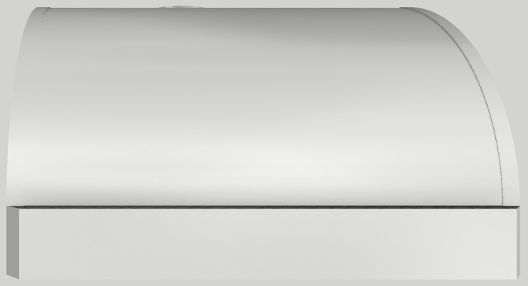 Stainless steel bands and rounded shape of this European wall-mount hood create a unique design. No bands on a real brass or a real copper overlay. Heat lamps may also be added to selected models. Click on the models for a list of our base model numbers for standard sizes; simply select the model you need, and then specify the finish (painted, stainless steel, real brass, real copper, or hammered copper). Recommended mounting height is 30" above the cooking surface. Matching wall mount duct covers (sold separately) are available in standard sizes for 8', 9', and 10' ceiling heights or in custom sizes. All Vent-A-Hood products are suitable for use in damp locations (outdoor applications such as a covered patio) when installed in a GFCI protected branch circuit.