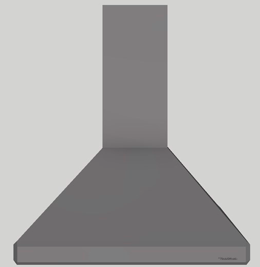 Click on the models for a list of our base model numbers for standard sizes; simply select the model you need, and then specify the finish (painted or stainless steel.) Not available in real brass, real copper, or hammered copper. Recommended mounting height is 24" from the cooking surface. Shown with matching wall mount duct cover (sold separately), available in standard sizes for 7', 8', and 9' ceiling heights or in custom sizes. All Vent-A-Hood products are suitable for use in damp locations (outdoor applications such as a covered patio) when installed in a GFCI protected branch circuit.