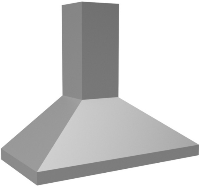 Shown with matching wall mount duct cover (sold separately), available in standard sizes for 7', 8', and 9' ceiling heights or in custom sizes. All Vent-A-Hood products are suitable for use in damp locations (outdoor applications such as a covered patio) when installed in a GFCI protected branch circuit.